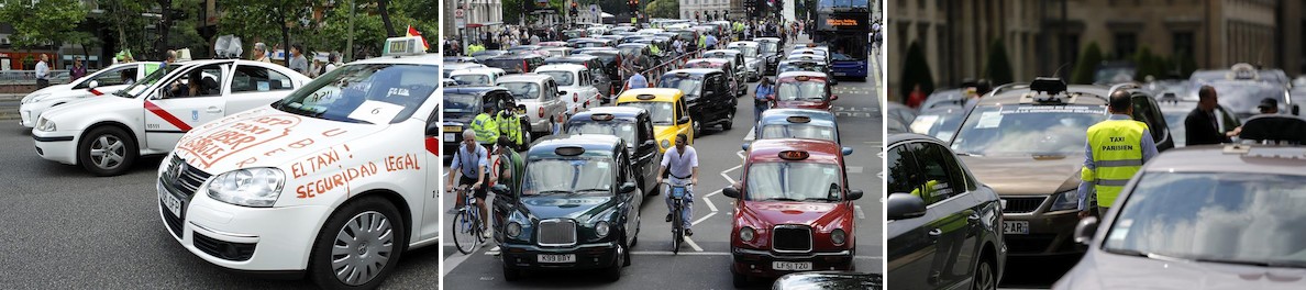 La imagen de la protesta de los taxistas se ha repetido en toda Europa. Miles de taxis negros de Londres han colapsado también varias calles del centro de la capital británica en protesta por la aplicación móvil que tachan de "ilegal".