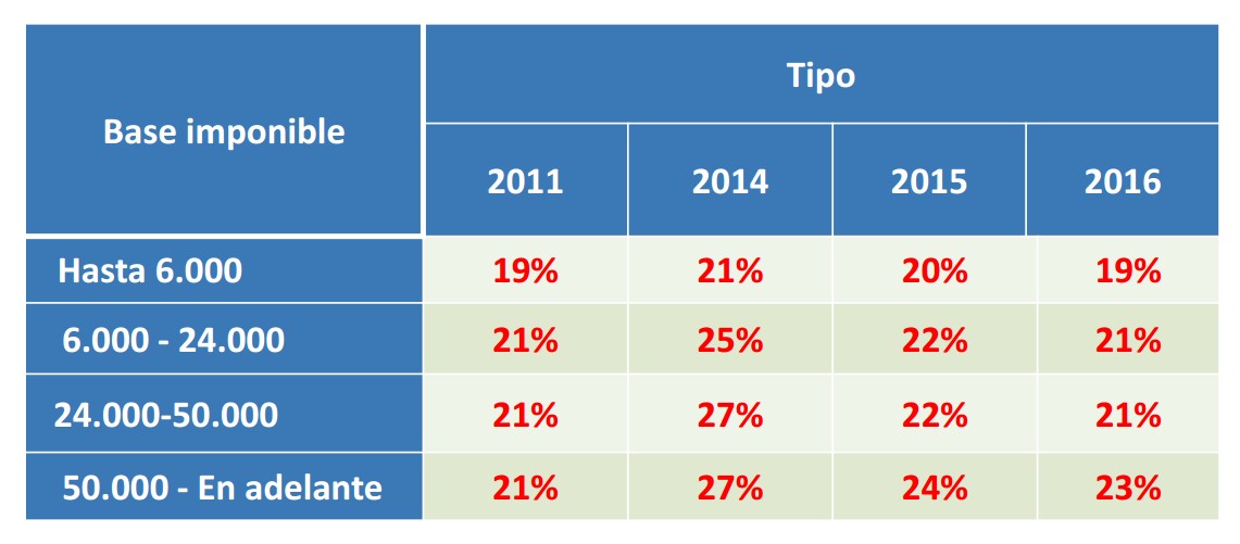 Para comparar, quizás lo más gráfico sea ver cuáles eran los tramos vigentes en este momento:
