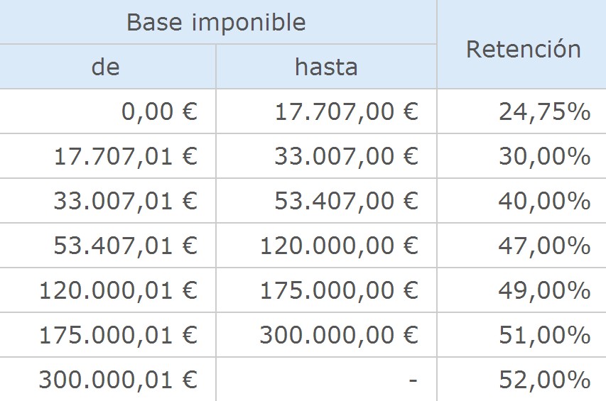 Eso sí, lo que hay que tener en cuenta es que cada una de las rebajas se refiere a los tramos de renta, no a los sueldos de cada uno. Es decir, el que gane 25.000 euros netos verá reflejado un descenso del 24,75% al 19% por los primeros 12.000 euros, pasará del 24,75% al 24% por los siguientes 5.000 euros (hasta los 17.707 actuales del primer tramo), etc... Por eso es tan importante la bajada en el primer tramo, porque afecta a todos los contribuyentes, pero especialmente a los de rentas bajas, que concentran la mayor parte de sus ingresos en este escalón.