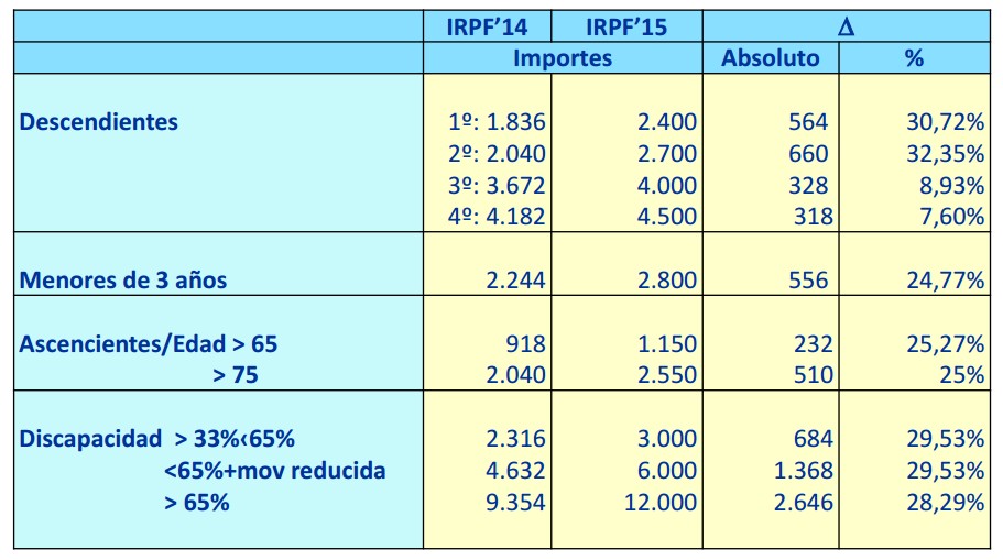 Ahora hay que determinar el mínimo personal y familiar. En nuestro caso es sencillo, porque hablamos de un soltero sin hijos. Por lo tanto, tras la reforma, no tributará por los primeros 5.550 euros (hasta ahora, son 5.151 euros). En el siguiente cuadro, está el resumen de cómo cambia esta cifra para cada familia: