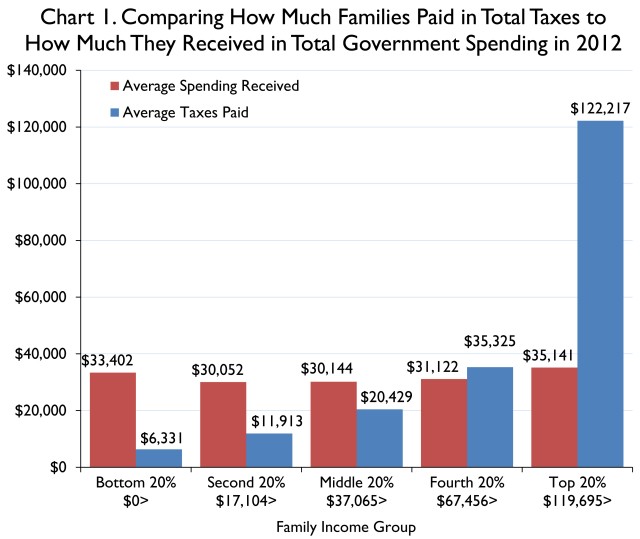 1. El 20% con menos ingresos paga anualmente unos 6.300 dólares en impuestos, pero recibe más de 33.400 dólares en transferencias y prestaciones varias.