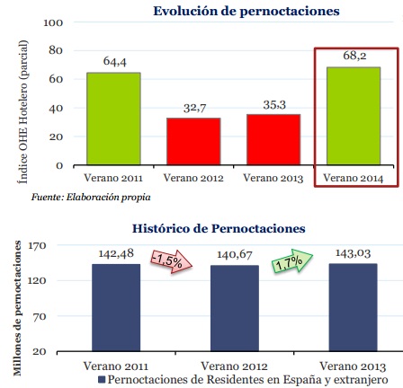 Buenas perspectivas en el sector hotelero español para este verano. Los hoteleros españoles prevén una ocupación de más del 90%, superando los niveles de pernoctaciones de 2007. La recuperación de la demanda doméstica así como la consolidación de la llegada de turistas extranjeros llevarán a los hoteles, según su confederación, a alcanzar, "casi con toda seguridad" el 90% de la ocupación el próximo mes de agosto.