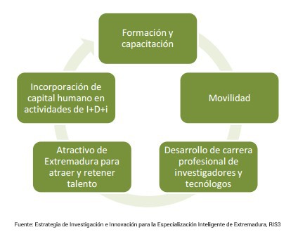 - El talento especializado: se abordarán acciones para dotar a la región de capital humano altamente cualificado para impulsar las áreas estratégicas de la región. Para ello, se pondrán en marcha medidas relacionadas con los siguientes aspectos: