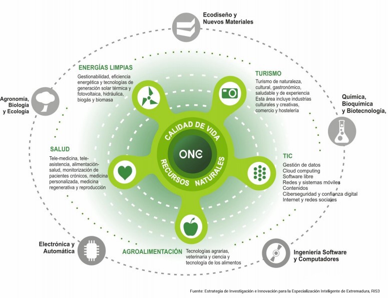 Para elaborar RIS3, Extremadura ha diseñado una estrategia orientada a priorizar esfuerzos en aquellos sectores económicos en los que se identifiquen ventajas competitivas frente a otras regiones. Así, desarrollando las tecnologías relacionadas con sus fuentes de diferenciación, fundamentalmente basadas en la explotación sostenible de los recursos naturales y culturales y en la calidad de vida, será posible que la región afronte los retos que se plantea Europa en los próximos años.