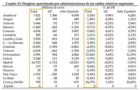 En realidad, con estos primeros datos se confirma lo que dictamina el sentido común: las regiones ricas tienen saldo negativo (reciben menos de lo que aportan) y las regiones pobres tienen saldo positivo. Sólo existe una excepción: País Vasco y Navarra, dos regiones entre las más ricas en renta per cápita, aportan menos de lo que reciben, algo que sólo puede explicarse por las peculiaridades del sistema foral.