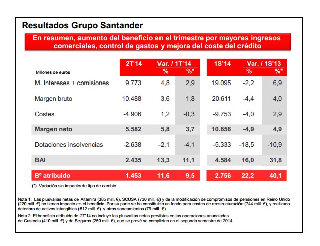 Banco Santander ha cerrado el primer semestre de 2014 con