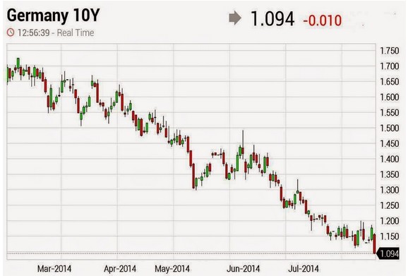 El Commerzbank avanzó que el PIB alemán podría haber bajado un 0,2% en el segundo trimestre. La desaceleración de Alemania, primera economía de Europa, echa por tierra la posibilidad de que la locomotora germana tire de las economías del sur. Todo ello demuestra que "Europa no está ni cerca de la recuperación. La política monetaria se ha quedado sin tracción", según indica Steen Jakobsen, analista de Saxo Bank.