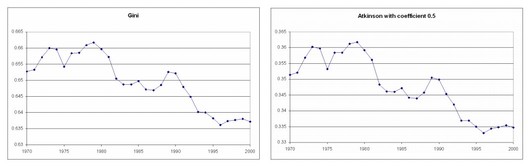El economista catalán, que debe su prestigio académico a los trabajos que ha publicado sobre estas cuestiones, ha explicado que, tanto si aplicamos el Coeficiente Gini como si calculamos el Coeficiente Atkinson, la evolución de la desigualdad global ha sido la opuesta a la que describe López-Zuriaga, con una progresiva caída desde los años 80.
