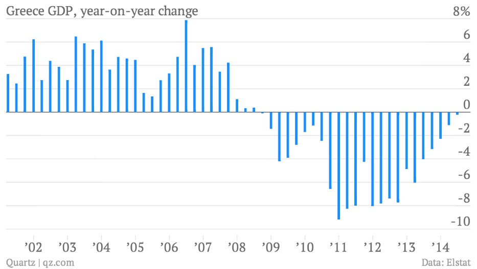 Grecia es, sin duda, el país que mejor ejemplifica la gravedad y profundidad de la crisis europea. La economía helena bajó un 0,2% en el segundo trimestre, acumulando 24 trimestres consecutivos de caídas, lo que equivale a seis años de recesión.