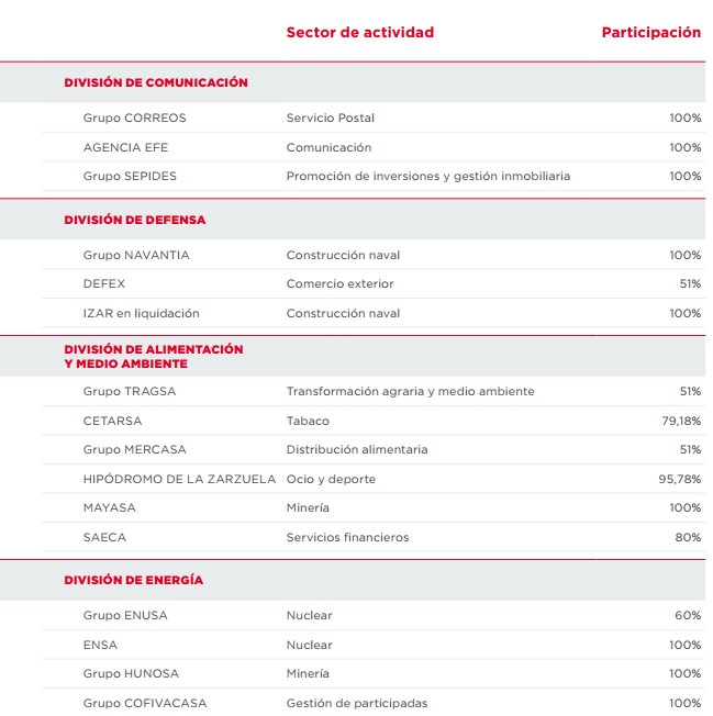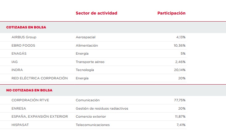 A pesar de este resultado, la Sepi consigue salvar sus números rojos gracias a la participación minoritaria en otras empresas (en su mayor parte privadas) que ascendió a los 692 millones de euros.