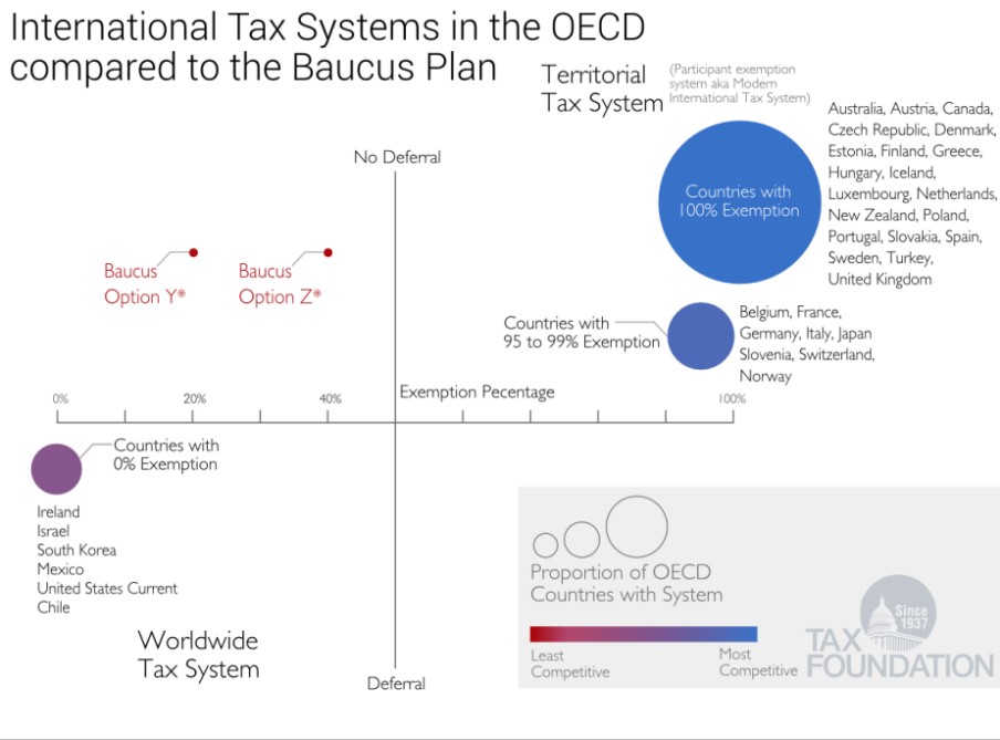 - El escenario opuesto es el del sistema tributario global, vigente en Irlanda, Israel, Corea del Sur, México, Chile… y Estados Unidos. En estos casos, los beneficios logrados fuera del país no solamente pagan los impuestos correspondientes allí donde se han generado, sino que también son sujetos a una segunda obligación fiscal cuando son repatriados a la matriz.