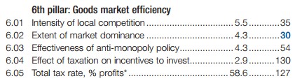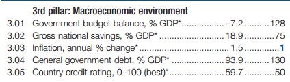 Los expertos del Foro destacan los esfuerzos realizados en el último año para reducir el déficit público, sanear el sistema financiero, fomentar el espíritu empresarial y mejorar la flexibilidad laboral. Pero, al mismo tiempo, ha empeorado la fiscalidad y la percepción sobre el funcionamiento de las instituciones debido, sobre todo, a la elevada corrupción política y a la existencia de una burocracia ineficiente.