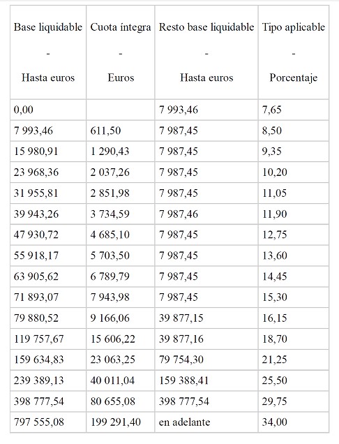 Pero la ley española dispone que, si alguna de las partes implicadas en la sucesión o donación no reside en nuestro país (el donante, el fallecido o el beneficiario) o el patrimonio está en el extranjero, el impuesto se aplicará según la normativa estatal, que establece un porcentaje de la base liquidable que va desde el 7.65% hasta el 34%. A la cuota que se obtenga, se le aplican los coeficientes en función del parentesco y del patrimonio.