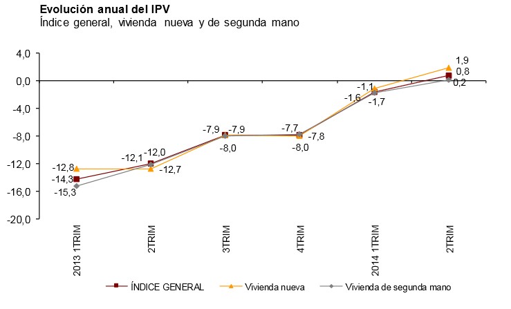 El precio de la vivienda sube por primera vez en España desde el primer trimestre de 2008. En concreto, aumentó un 0,8% interanual en el segundo trimestre, según informó el Instituto Nacional de Estadística (INE) este lunes, ratificando así el repunte del 1% que avanzó el Colegio de Registradores la semana pasada.
