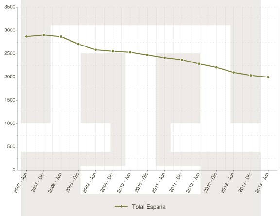 Según el INE, el precio de la vivienda nueva subió un 1,9% interanual, mientras que avanzó un 0,2% en el segmento de segunda mano, pero lo más significativo es que dicho encarecimiento acontece a pesar de que la demanda sigue cayendo. La compraventa de vivienda nueva bajó algo más de un 2% interanual en el segundo trimestre, situándose en el nivel más bajo de la crisis, mientras que el volumen total de transacciones (incluyendo nueva y usada) acumuló una caída del 5,4% interanual hasta junio.