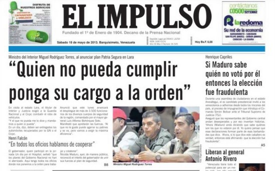 La noticia ha tenido repercusión en todo el mundo por lo que el gobierno de Maduro ha intentado buscar una solución al conflicto. Este miércoles, la edición digital del periódico anunciaba que la junta directiva del diario El Impulso había logrado un acuerdo in extremis con el ejecutivo para salvar el rotativo.