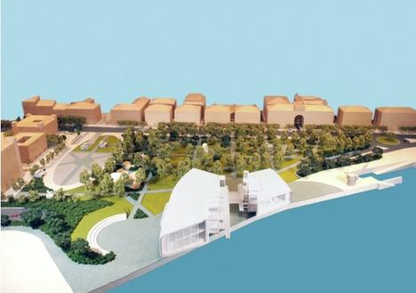 Al norte y al oeste del edificio, diseñado por el arquitecto Renzo Piano, se dispondrán dos plazas. La del oeste albergará un anfiteatro al aire libre para actividades culturales. Desde él, y gracias a la gran pantalla que habrá en la fachada del edificio, se podrá ver cine al aire libre y disfrutar de las actividades que tengan lugar dentro del Centro.