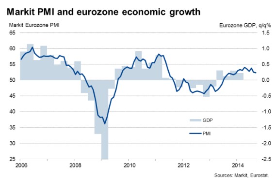 Un riesgo que, por el momento, crece con el paso del tiempo. No en vano, la zona euro volvió a frenar su crecimiento en septiembre respecto al mes anterior, según el índice adelantado PMI compuesto de la actividad total que elabora Markit.