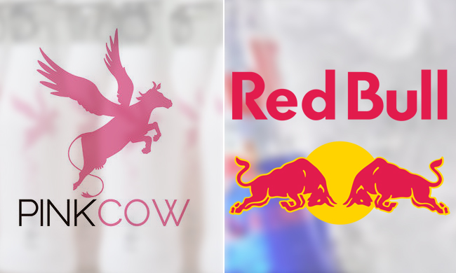 La bebida española tiene por logotipo una vaca rosa y alada que está suspendida en el aire, ¿tiene esto algo que ver con los dos toros rojos enfrentados de Red Bull? La multinacional de bebidas energéticas cree que sí y lo justifica asegurando que la res española hace referencia al eslógan de su marca: Red Bull te da alas. Según Red Bull, el diseño de Pink Cow se "aprovecha de su enorme reputación y prestigio en el mercado".
