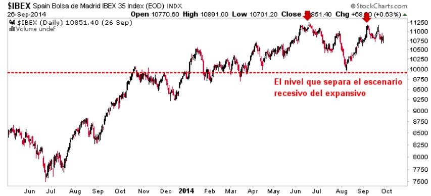 3. De esta manera, teniendo en cuenta que la economía española crece, y eso es alcista para el Ibex 35, pero que la economía europea presenta un riesgo de entrar en una nueva recesión, y eso es bajista para el Ibex 35, la pregunta es: ¿qué hacer ante esta divergencia del ciclo económico entre un país y el bloque económico al que pertenece? La respuesta es a) razonar, b) observar y c) actuar.