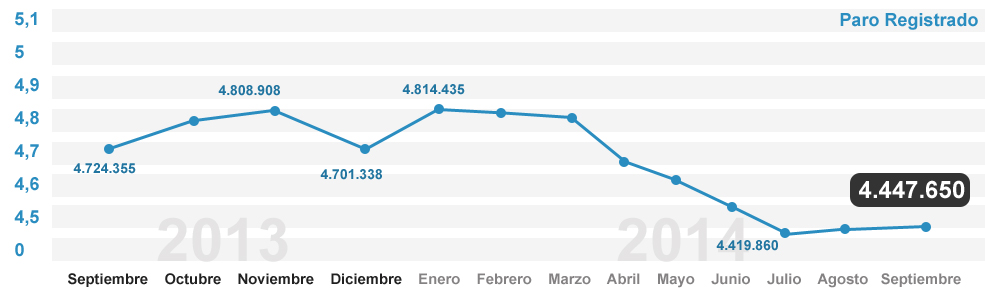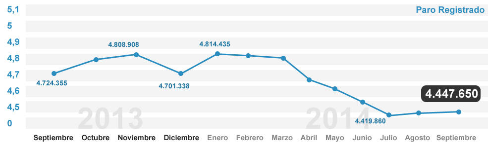 El número de parados registrados en las oficinas de los servicios públicos de empleo (antiguo Inem) cerró septiembre con un total de 4.447.650 parados, tras subir en 19.720 personas respecto a agosto, encadenando así dos meses consecutivos al alza, según ha anunciado este jueves el Ministerio de Empleo.