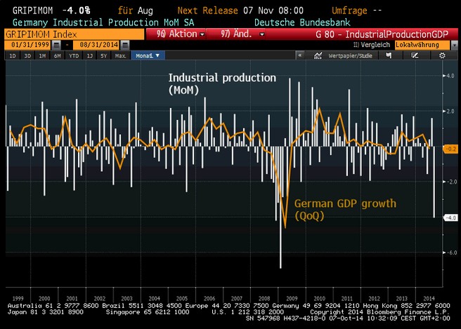 Los últimos datos de la economía alemana arrojan dudas sobre la fortaleza de la recuperación de la locomotora europea, después de que este lunes se anunciara que los nuevos pedidos de la industria germana disminuyeron en agosto un 5,7% respecto a julio, cuando habían registrado un incremento del 4,9%, su mayor caída mensual desde 2009.