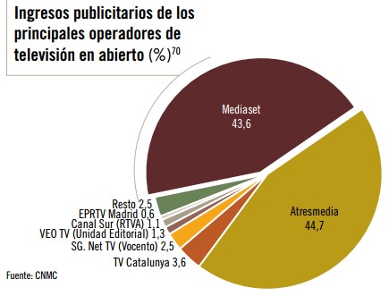 Ambos operadores son los de mayor tamaño del mercado y en conjunto captaron el 88,3% del total de ingresos por publicidad en el medio, "lo que indica un elevado grado de concentración", según destaca el informe del regulador.