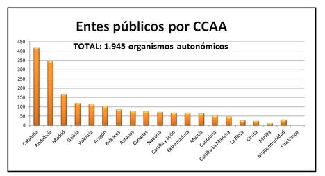 Eso sí, los casi 2.000 organismos que conforman la administración paralela autonómica no se distribuyen equitativamente entre todas las regiones. Sólo entre Andalucía y Cataluña suman casi el 40% del total (una proporción superior a su peso poblacional). Todas las comunidades tienen sus propios chiringuitos. Y no hablamos de órganos de la administración regional, sino de entes externos (empresas públicas, fundaciones u organismos autónomos, entre otros) que, por lo tanto, en muchas ocasiones no tienen que pasar por los filtros propios de la administración pública en temas como la contratación de su personal o el control de sus cuentas.