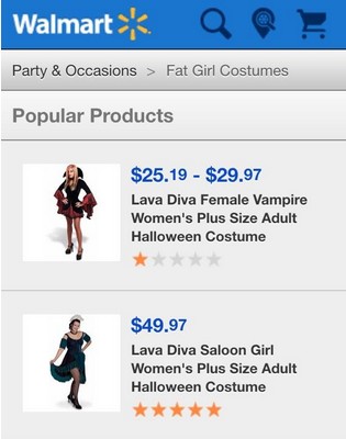 Truth in advertising, not always the best idea #walmart #fatgirlcostumes #Halloween pic.twitter.com/dz3HS1pUnf