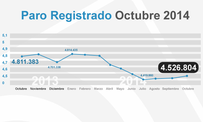 Asimismo, en lo que va de año (enero-octubre), el paro cayó en 174.534 personas, su mayor reducción desde 1998, mientras que en el mismo período de 2013 el descenso se limitó a 37.340 desempleados.