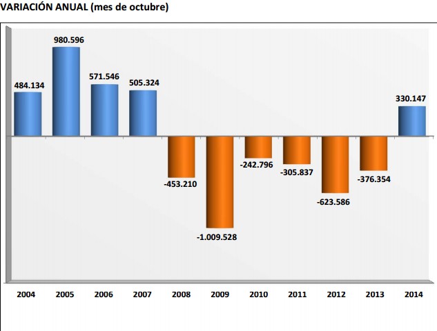 Y algo similar sucede con la afiliación, ya que la ocupación creció respecto a septiembre, por segundo año consecutivo en un mes de octubre desde 2007.