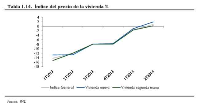 Esa progresiva mejora se plasma en el índice general del precio de la vivienda, y camina de forma paralela en los precios de la vivienda nueva y de los activos de segunda mano.