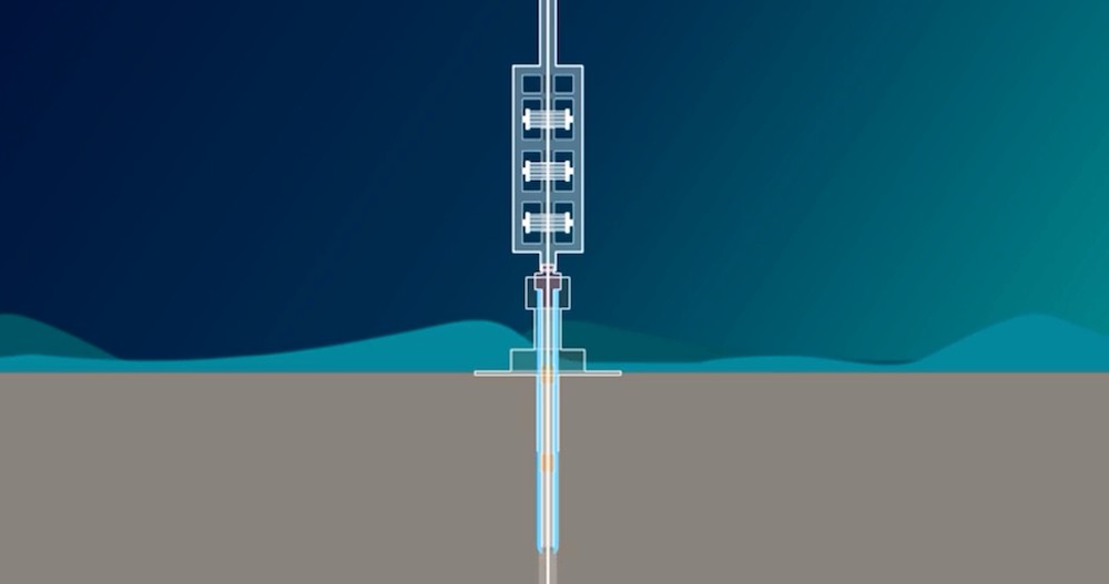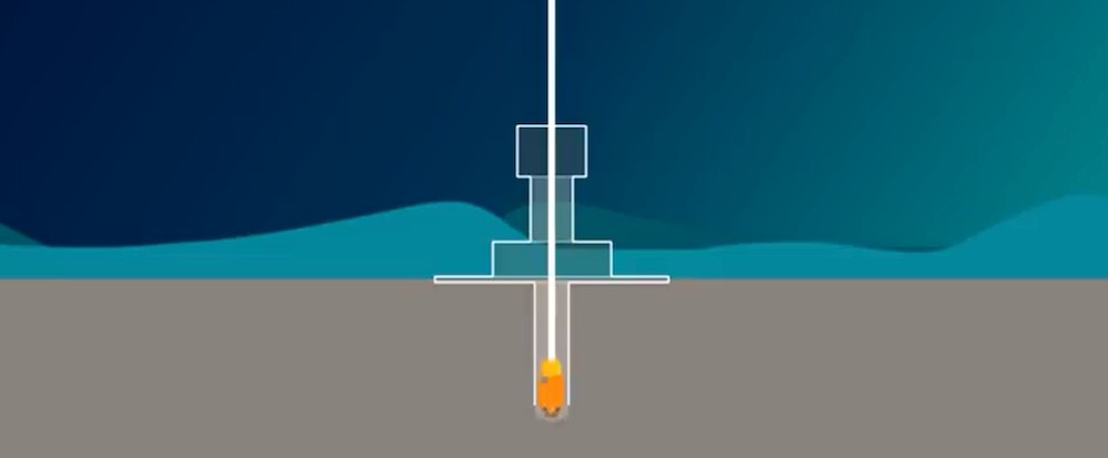 Se sitúa la tubería de revestimiento e inicia el proceso de sellado para conectar las tuberías al fondo marino.