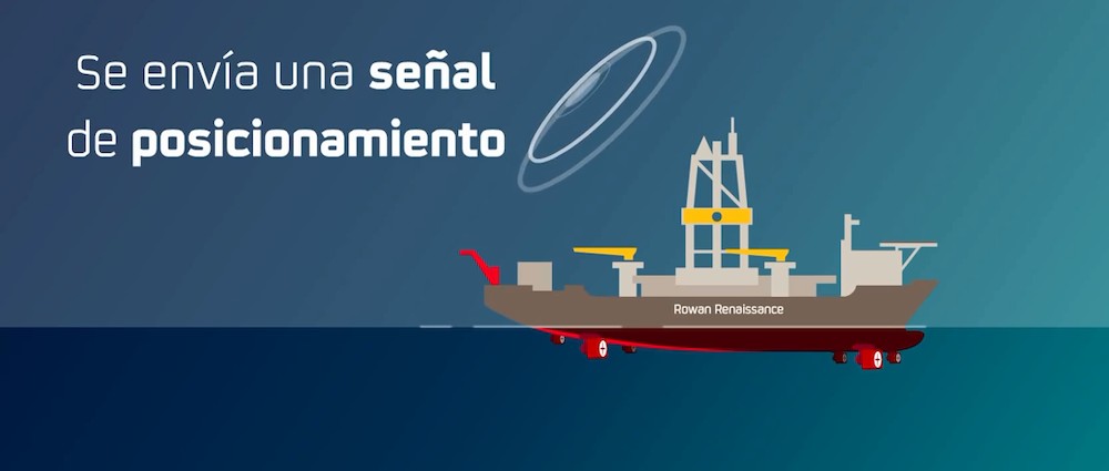 En primer lugar se envía una señal satélite de posicionamiento al buque para indicar la ubicación exacta de la perforación. Esta señal impide que el barco se mueva, ya que la misma activa los motores de posicionamiento para que se mantenga estable sobre el plano del lecho marino.