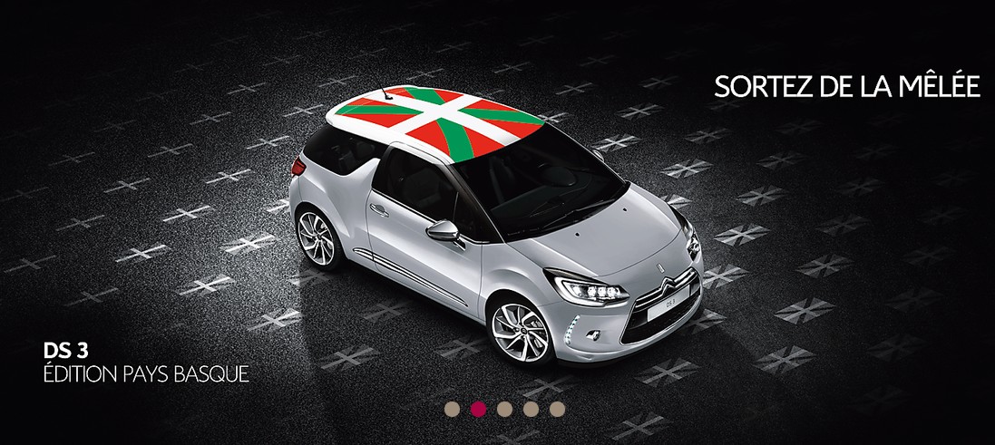 Citroën imita a Mini, pero en versión regionalista. La compañía francesa ha lanzado una campaña bautizada ¡Grita tus orígenes desde los tejados! en la que ha puesto a la venta un modelo de la categoría DS3 personalizable. La idea es que los conductores puedan decorar su vehículo estampándole una bandera regional en su techo.