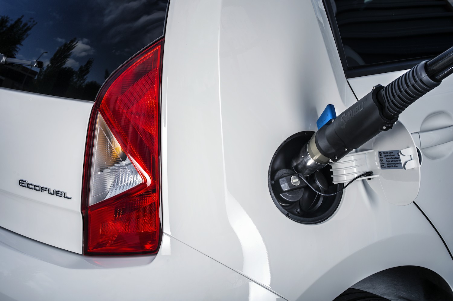 Los motores GNC combinan la utilización de gasolina y gas. Por ello, disponen de dos depósitos. A la izquierda, se carga el gas natural, a la derecha, la gasolina.