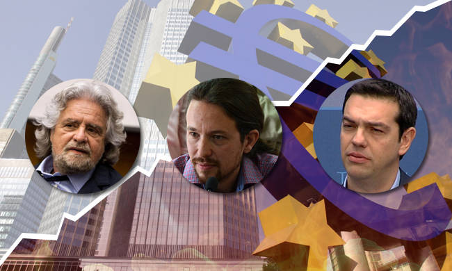 El auge de los partidos populistas, defensores de impagar la deuda e incluso abandonar el euro como solución a la crisis, no es un fenómeno exclusivo de España, tras la fuerte irrupción de Podemos en el mapa político, sino que también se extiende a Grecia e Italia, afectando así a buena parte del sur de Europa.