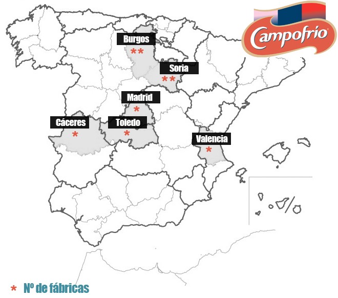 - Villaverde: ubicada en el distrito madrileño de Villaverde. La planta está especializada en jamones curados y salchichas. Tiene 183 empleados en plantilla.