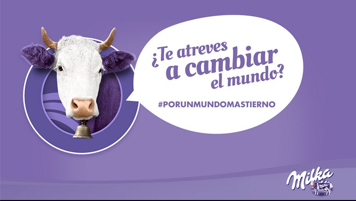 Empresa: Milka País: Suiza Historia: el primer envoltorio de chocolate Milka se remonta a 1901 y fue adornado con una vaca de color negro y blanco sobre un fondo de un paisaje alpino. Pero… ¿Por qué una vaca? en la compañía creen que la vaca representa, mejor que cualquier otro animal, el mundo de la leche alpina. Para crear la vaca de color lila, los responsables de la compañía se inspiraron en el dicho "familiarízate con aquello que es extraño, convierte en extraño a aquello que es familiar". Con este color querían atraer la atención sobre su chocolate y en 1973, lanzaron el primer anuncio publicitario Milka en el que aparecía esta extraña vaca.
