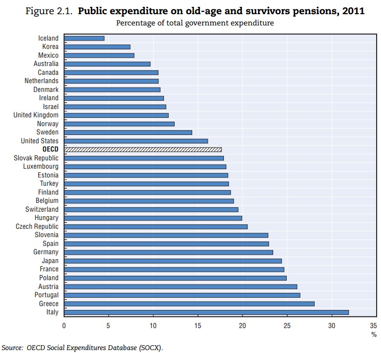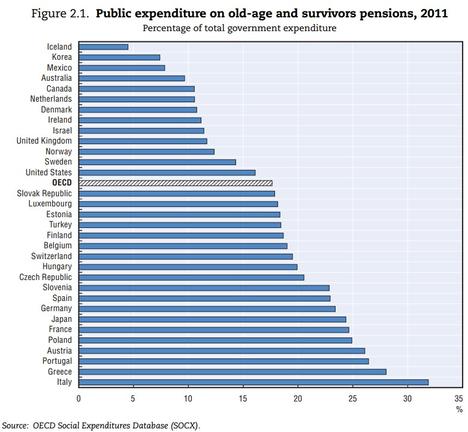 Un vistazo a los grandes gráficos del informe de la OCDE puede servir de aviso. Los países más golpeados por la crisis (Grecia, Portugal, Italia y España: los famosos PIGS) también están entre los que requerirán un ajuste más pronunciado en su sistema de pensiones.