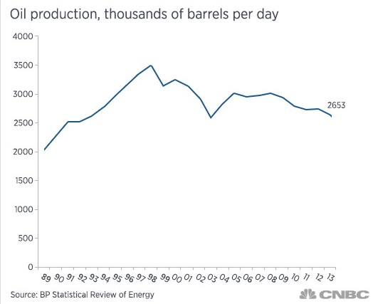 El panorama que atraviesa Venezuela es más dramático que el resto de productores debido a su particular situación económica. En primer lugar, su producción petrolífera no ha dejado de caer desde que Hugo Chávez nacionalizó el sector de hidrocarburos.