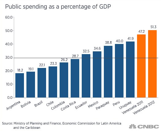 Asimismo, registra el nivel de gasto público más elevado de América Latina, superando el 50% del PIB, y muy superior a los ingresos fiscales provenientes del petróleo.