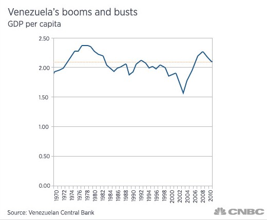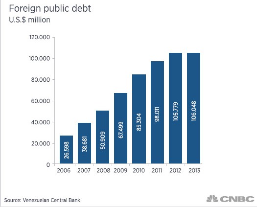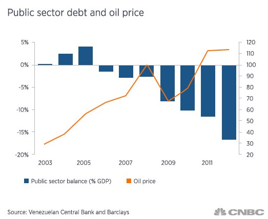 De hecho, Venezuela lleva años incurriendo en un abultado défiict público, a pesar de que se ha beneficiado de los elevados precios petrolíferos alcanzados en los últimos años.