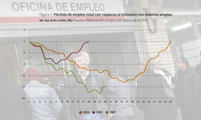 La crisis que ha vivido España entre 2008 y 2013 pasará a la historia. Y no es una frase hecha. Al menos en términos de empleo, ninguna otra de las recesiones sufridas por nuestro país ha sido tan profunda y tan larga. De hecho, la comparación con anteriores momentos de dificultades económicas es muy dolorosa.