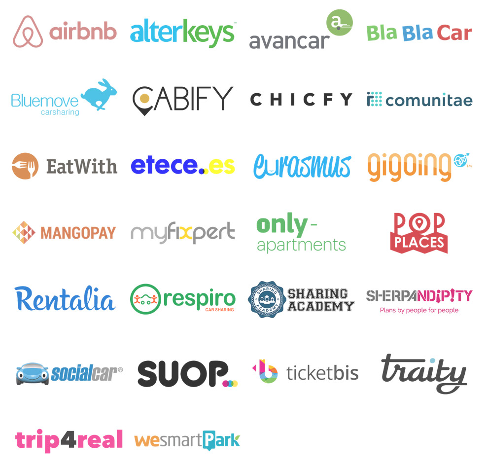 Sharing España, que así la han bautizado, está formada por compañías que se dedican a sectores actividades tan diversas como la de los alojamientos, el transporte de viajeros, los aparcamientos o las tareas domésticas. Los miembros de esta plataforma son los siguientes: Airbnb,AlterKeys, Avancar, Blablacar, Bluemove, Cabify, ChicFy, Comunitae, Eatwith, Etece, Eurasmus, Gigoing, MangoPay,MyFixpert, Only Apartments, PopPlaces, Rentalia, Respiro, SharingAcademy, Sherpandipity, SocialCar, Suop, TicketBis, Traity, Trip4Real y WeSmartPark.