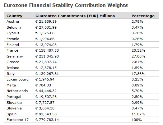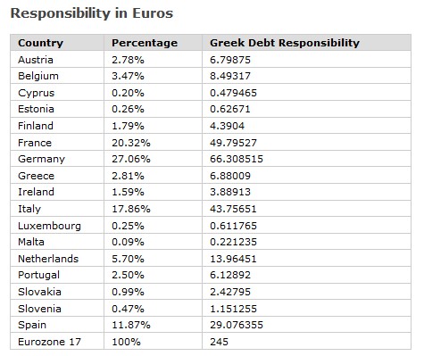Pese a ello, cabe recordar que los principales acreedores de Grecia son el resto de estados de la zona euro, de modo que su quiebra y su salida del euro se traduciría en cuantiosas pérdidas para los contribuyentes de la moneda única. Por un lado, las garantías aportadas por Grecia al Fondo de rescate europeo, equivalentes a unos 22.000 millones de euros, se tendrían que repartir entre los demás países.
