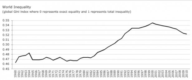 Por tomar únicamente la desigualdad como referencia, baste la siguiente gráfica que mide su evolución global entre 1960 y la actualidad: