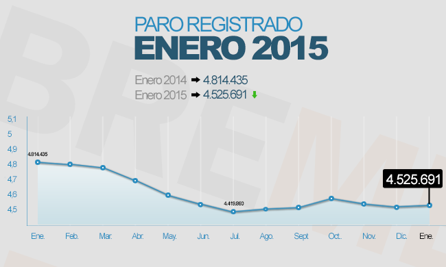Así, el número de parados registrados ha subido en 77.980 personas respecto a diciembre y se ha situado en 4.525.691 parados. Esta cifra todavía no ha logrado bajar de los 4.447.711 millones de parados con los que terminó José Luis Rodríguez Zapatero su legislatura en 2011, aunque la supera en 77.980 personas. La parte positiva de este dato es que el aumento supone el menor repunte en un mes de enero desde el año 2007, cuando aumentó en 59.635 desempleados.