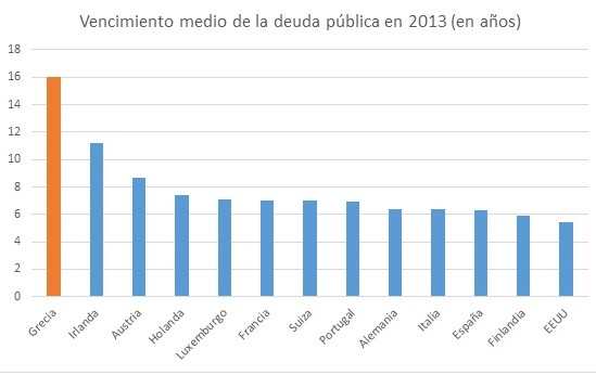Y lo mismo sucede con los plazos de devolución. La deuda helena disfruta del mayor período de vencimiento de toda el continente, con una media de 16 años, casi tres veces más que España.