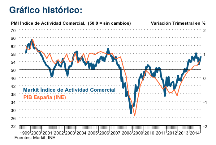 Markit también encuentra motivos para el optimismo en el sector servicios, del que destaca el fortalecimiento de las condiciones del mercado. El Índice de Actividad Comercial alcanzó en enero los 56,7 puntos, frente a los 40 en los que se movía este indicador en el año 2012. Se trata del decimoquinto mes en el que la actividad del sector registra datos crecientes.